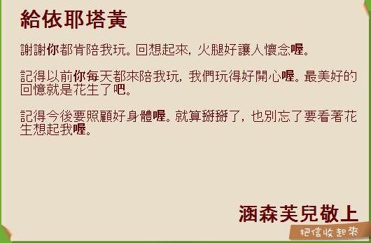 這信應該是最順的一 次了~他還叫我要好好照顧身體內!