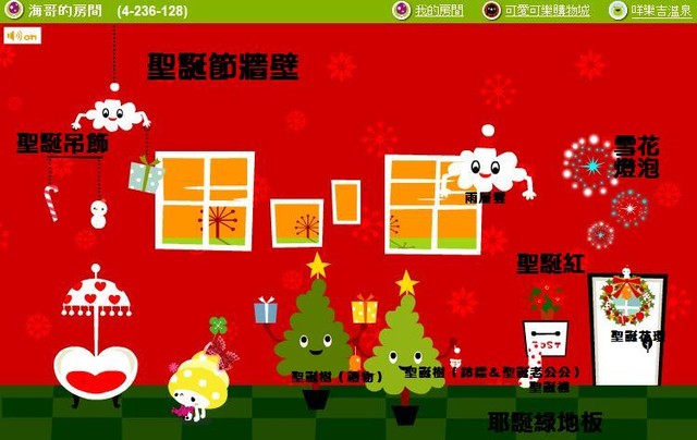 買了 聖誕吊飾 兩棵聖誕樹 還有聖誕襪 雨層雲 聖誕紅 還有很美的聖誕花環 以及牆壁跟地板都換了~